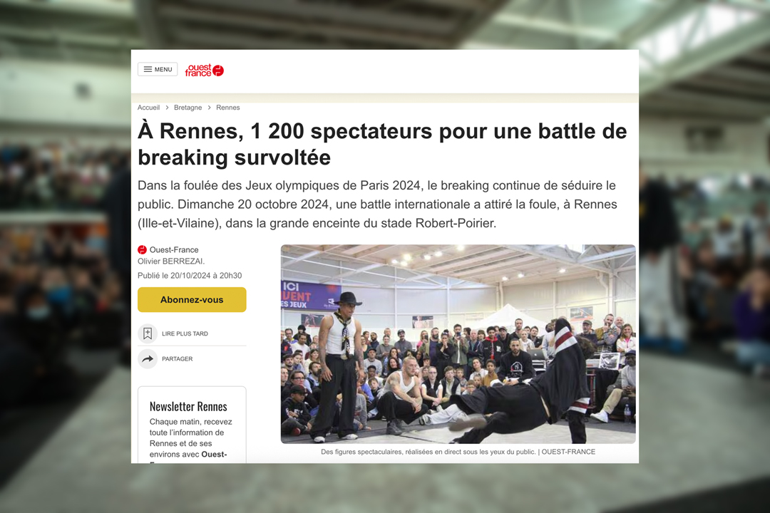 Le brief était clair : Il fallait donner envie aux personnes de venir à l'événement même s'ils n'avaient jamais été à un battle de danse. Les personnes à qui le festival s'adressaient étaient des familles vivant à Rennes qui pourraient venir en groupe pour remplir plus facilement le lieu (un peu plus de 1000 places à vendre).